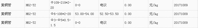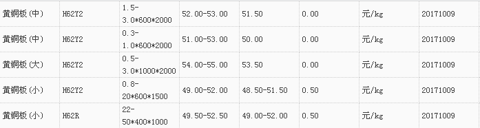山东有色金属网2017-10-09黄铜类现货报价