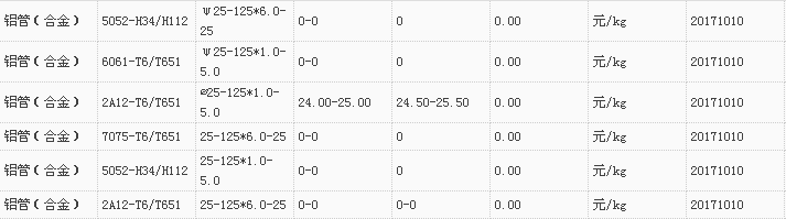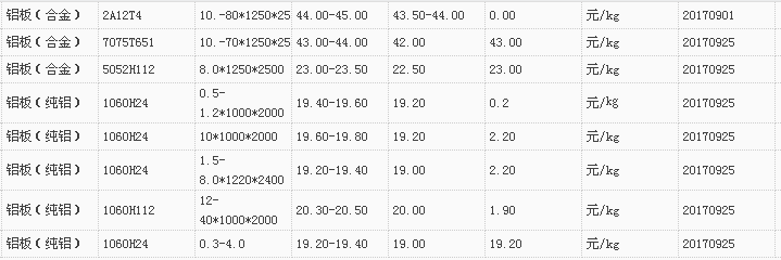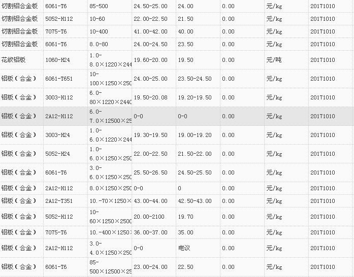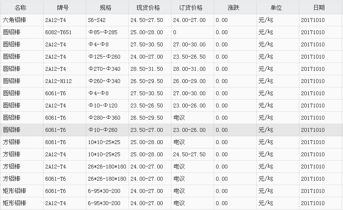 山东有色金属网2017-10-10铝材类现货报价