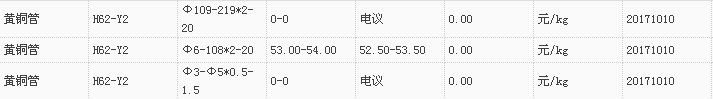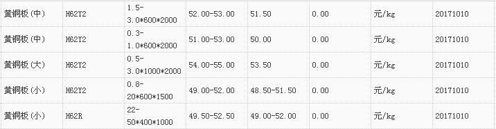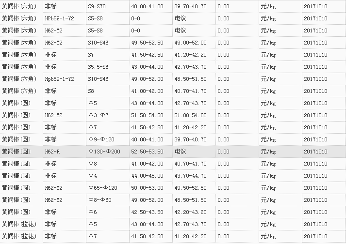 山东有色金属网2017-10-10黄铜类现货报价