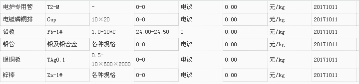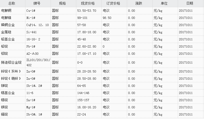山东有色金属网2017-10-11炉料焊材类现货报价