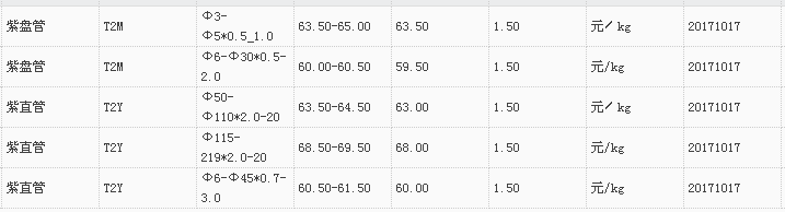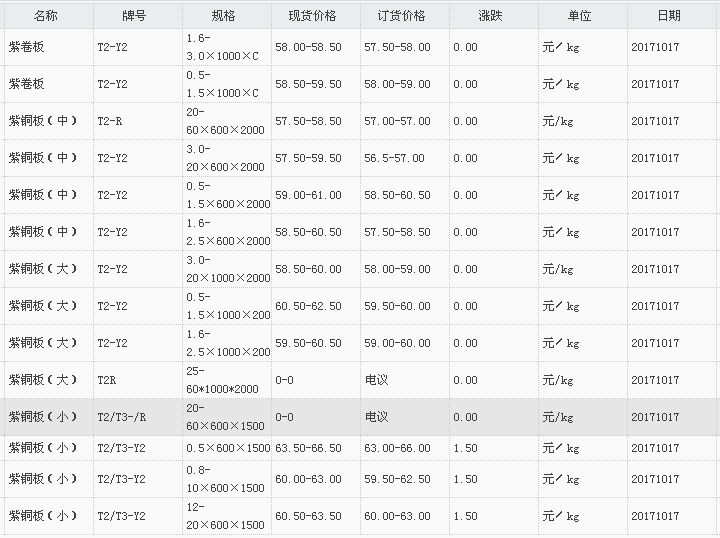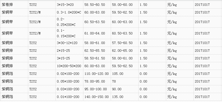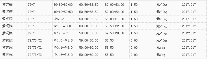 山东有色金属网2017-10-17紫铜类现货报价