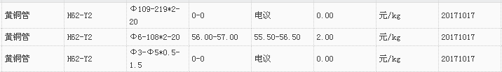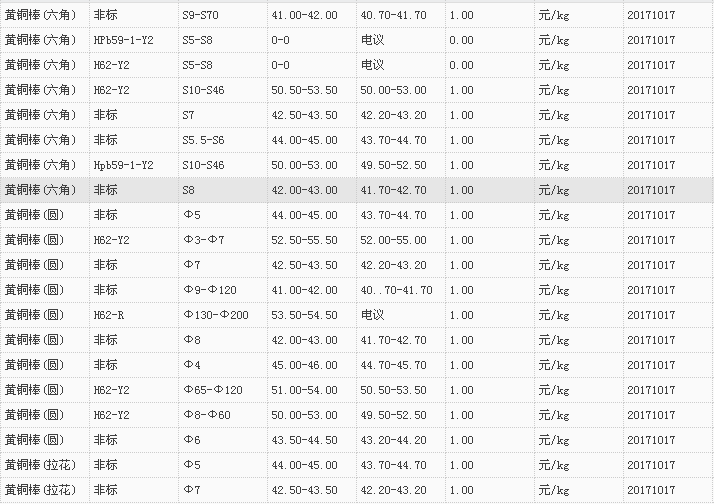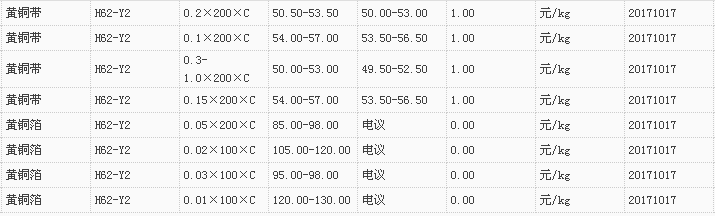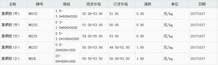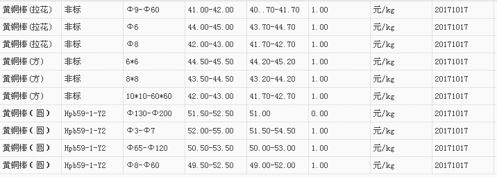 山东有色金属网2017-10-17黄铜类现货报价
