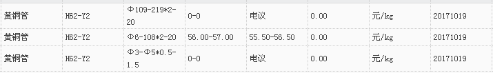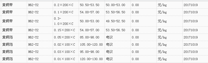 山东有色金属网2017-10-19黄铜类现货报价