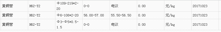 山东有色金属网2017-10-23黄铜类现货报价