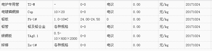 山东有色金属网2017-10-24炉料焊材类现货报价