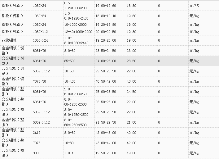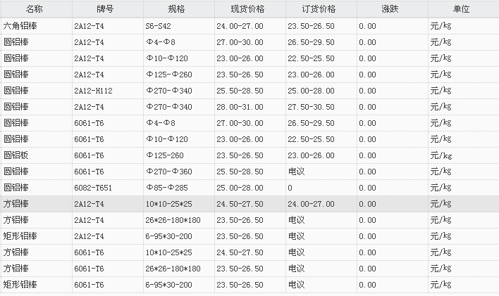 山东有色金属网2017-11-13铝材类现货报价