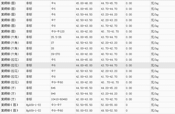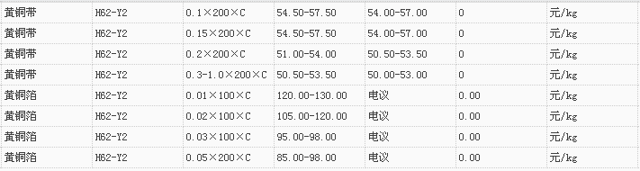 山东有色金属网2017-11-13黄铜类现货报价