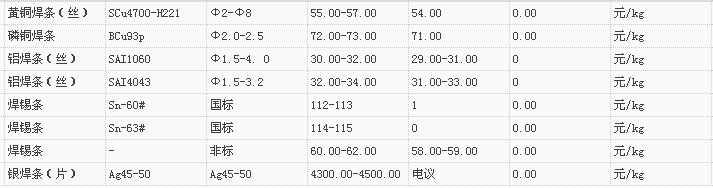 山东有色金属网2017-11-13炉料焊材类现货报价