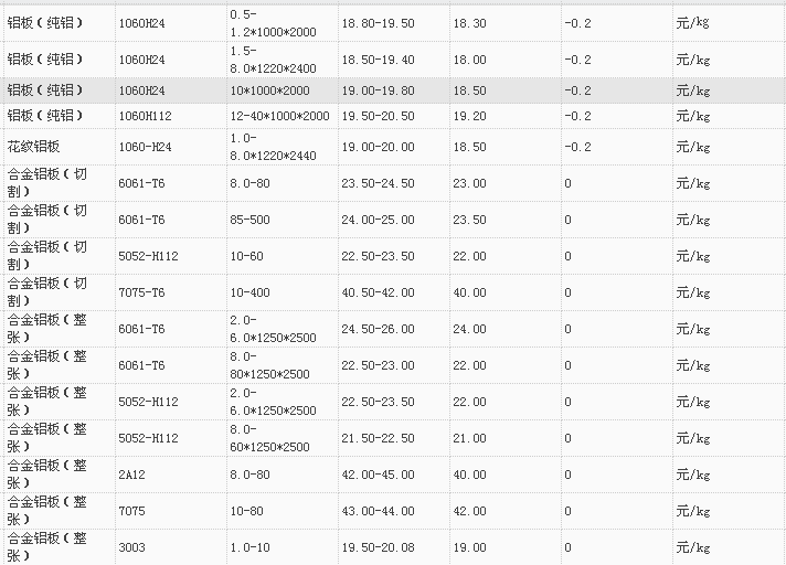 山东有色金属网2017-11-22铝材类现货报价