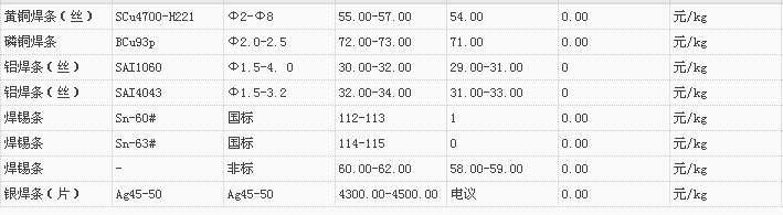 山东有色金属网2017-11-22炉料焊材类现货报价