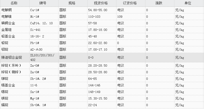 山东有色金属网2017-11-24炉料焊材类现货报价