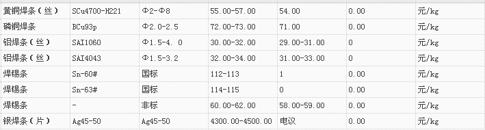 山东有色金属网2017-11-28炉料焊材类现货报价