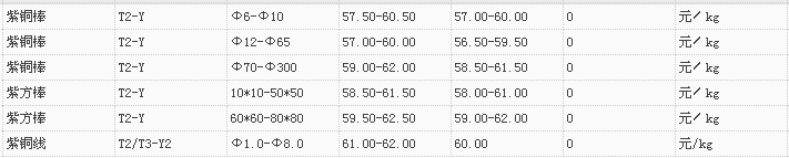 山东有色金属网2017-12-18紫铜类现货报价