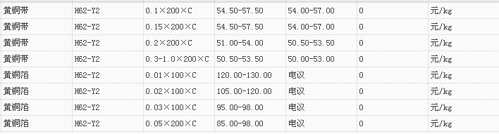 山东有色金属网2018-1-2黄铜类现货报价