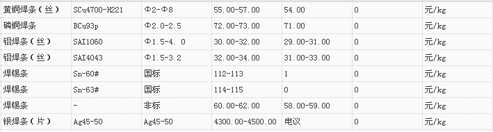 山东有色金属网2018-2-1炉料焊材类现货报价